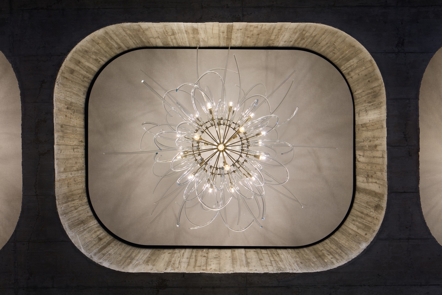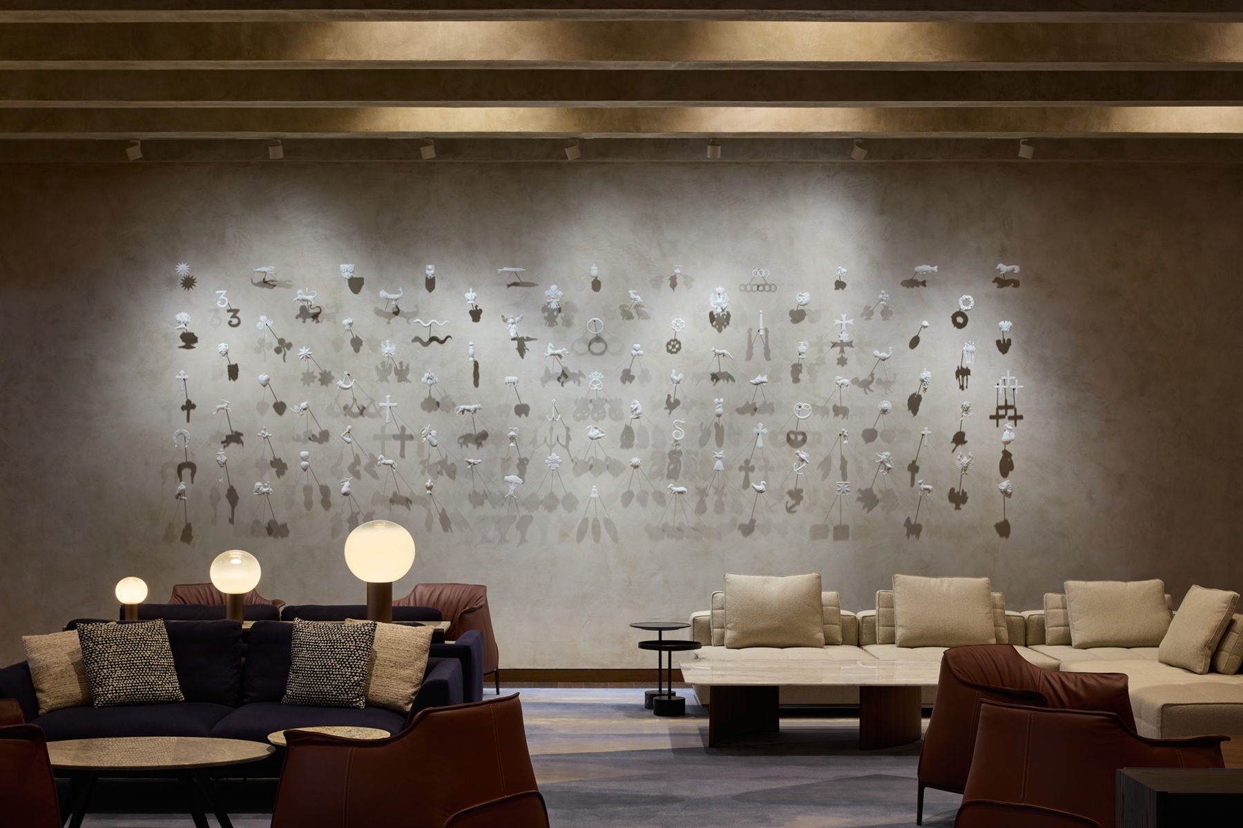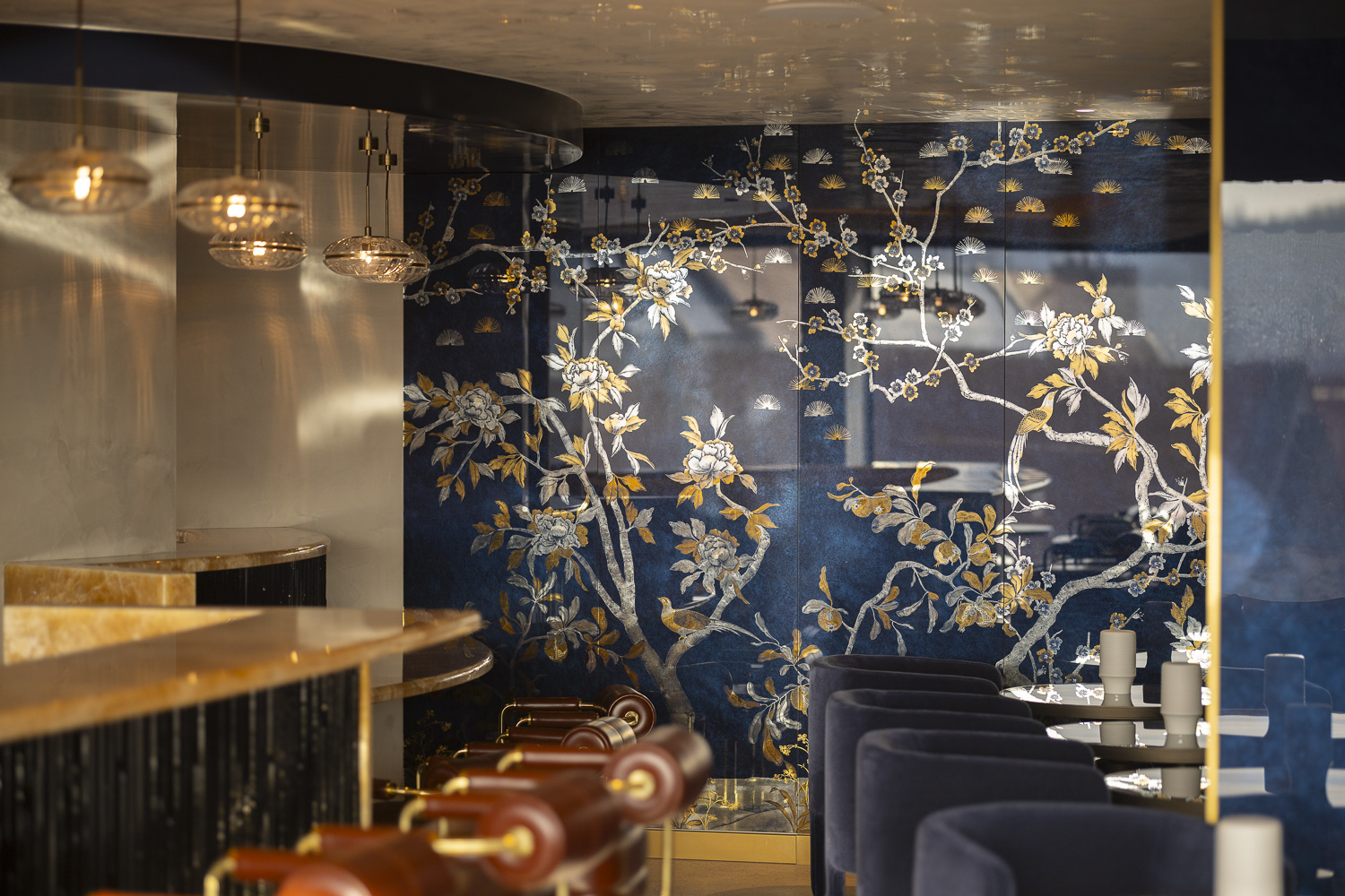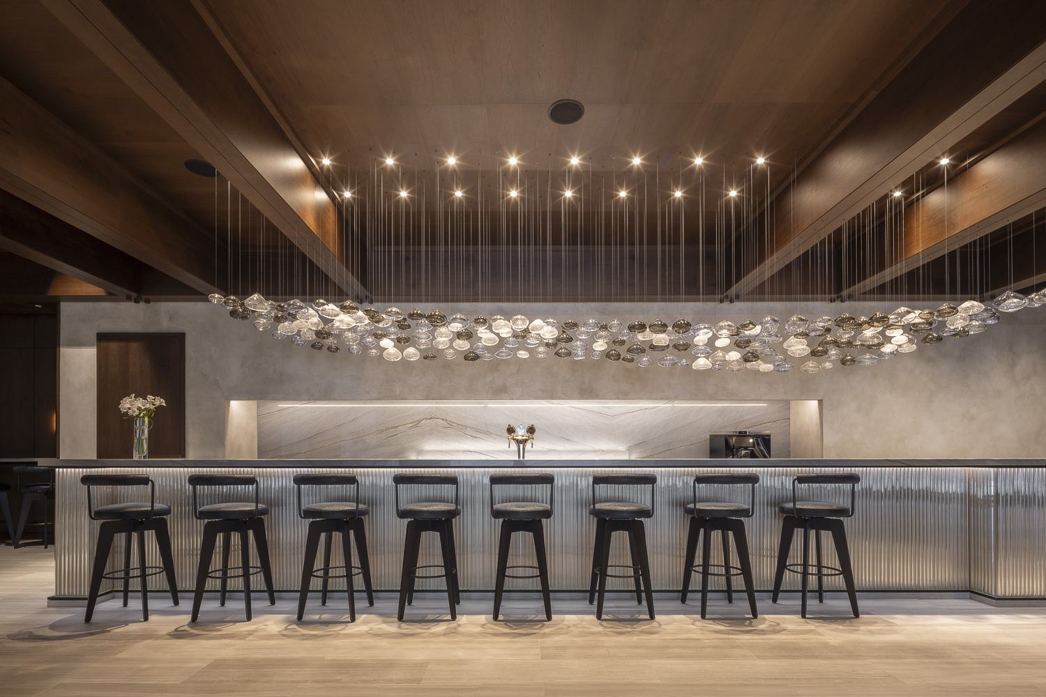 Bar v C-Suite Lounge je vytvořen z lehaného skla v otisku rozvinuté stromové kůry sklářskou dílnou S...